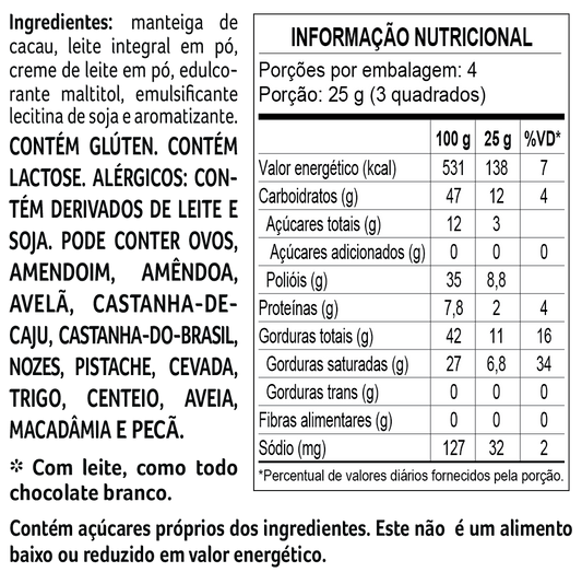 Economize 9%Tablete laCreme Branco Zero Adição de Açúcar 100g